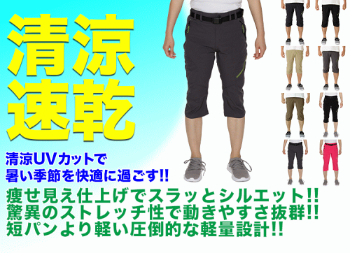 他のパンツには無い「着痩せシルエット」を是非ご体感ください!※参考:ズボンの重さ比較 ジーパン :600g ジャージ長ズボン : 400g ジャージ短ズボン : 280g 本パンツ(ベルト含む) 208g ⇒軽量性に優れております!▼こんな方には特におすすめフィットネス・ハイキング・公園遊びやレジャーにおすすめ!本パンツの特徴であるストレッチ性と速乾性は体を動かすフィットネス・登山・レジャーなどで特に実力を発揮します。