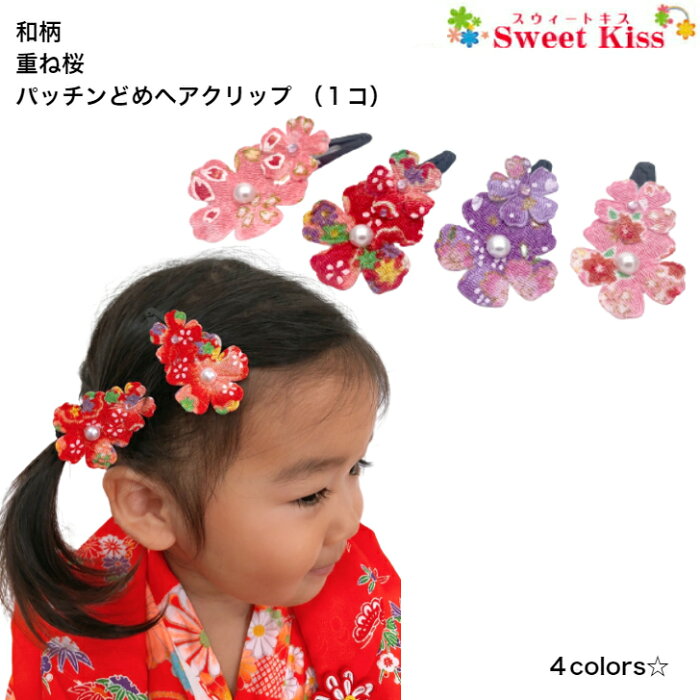 【 浴衣 髪飾り 】和柄 重ね桜 パッチンどめ ヘアクリップ (1コ) | ヘアアクセサリー 髪飾り 髪留め ヘアピン パッチンピン キッズ 子供 こども 女の子 七五三 三歳 3歳 ひな祭り 雛祭 花火大会 お正月 かわいい KHCP 全品 送料無料 実施中