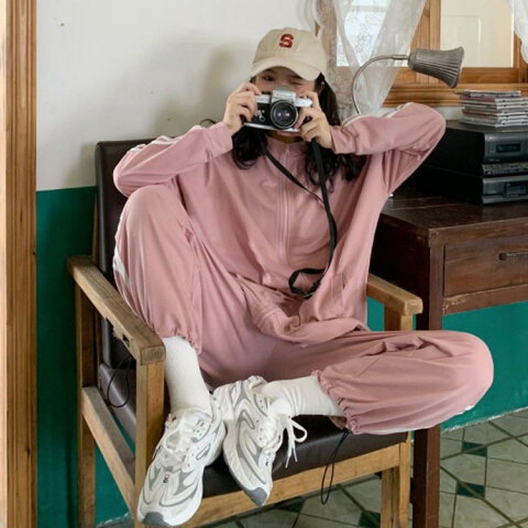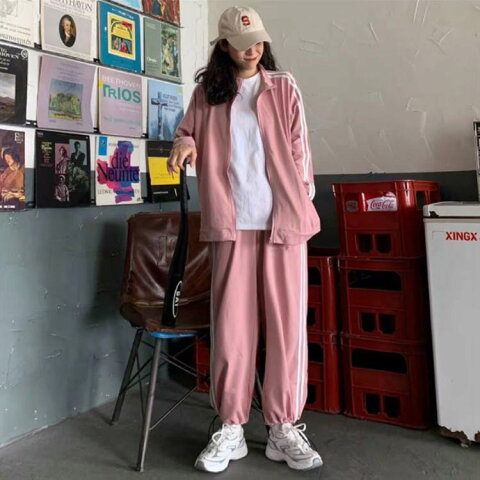 2本ラインがポイントのデザインジャージ!薄すぎず、厚すぎないのさらっと着心地のいい上下セットです。
