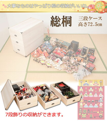 桃の節句のお雛さんや端午の節句の兜を収納するのにとても便利で重宝すること間違いなし 深型桐収納ケース収納表記はあくまでも目安です。