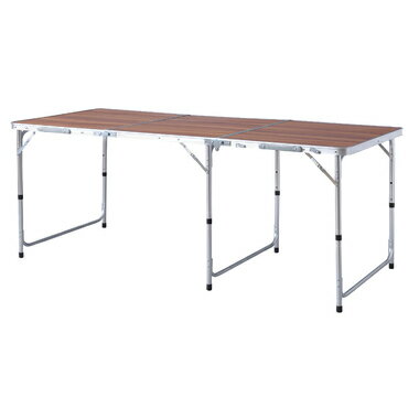 [商品サイズ(cm)]W180×D80×H54/62/70[スペック]メラミン化粧繊維板 アルミ ポリエステル[組立てについて]お客様組立て品[付属工具]なし[お客様にご用意していただく工具]なし[組立て人数]なし[組立時間]なし[静的耐荷重]設定無し[機能]折りたたみ式[商品重量(kg)]9[梱包サイズ]85×63×22[梱包重量(kg)]18[原産地]中国[カテゴリ]アウトドア[カラー]ブラウン[コメント]W180の大型フォールディングテーブル。