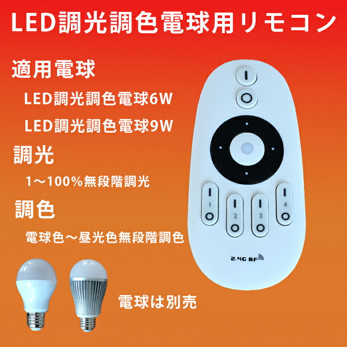 リモコンの調光+と調光-のボタンにて電球の明るさを無段階に調節でき、電球色+と昼光色+のボタンにて電球の発光色を電球色から昼光色まで無段階に調節できる。